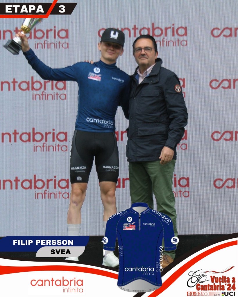 I täten hade vi nu Vilgot och Joel som var med bra över Caracol. Joel och Vilgot satt sedan bra över nästa bergspris och kom in till målbacken i en grupp 7-20 kanske. Joel slutade tia både på etappen och i den allmänna klassificeringen och Vilgot som verkligen visade bra form i Cantabrien kom in på 19e plats på etappen och slutade 21a totalt